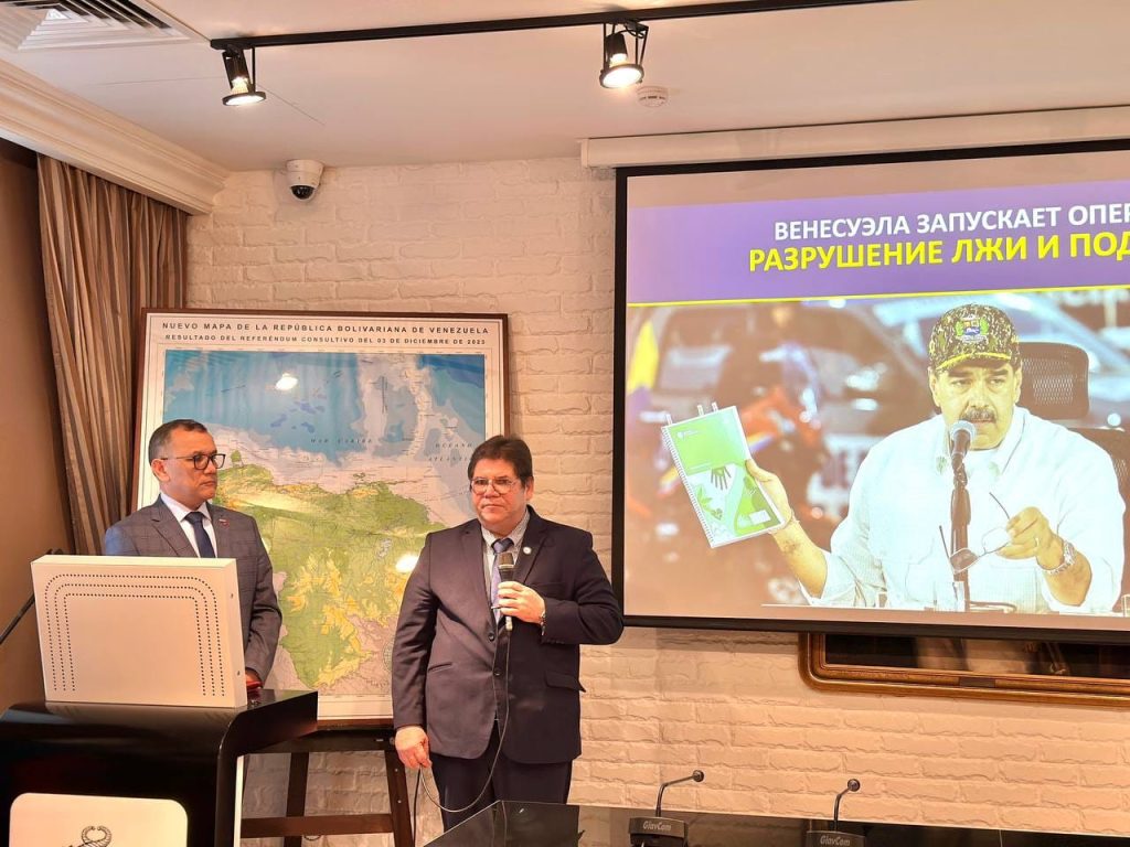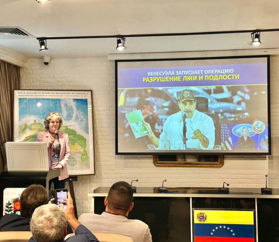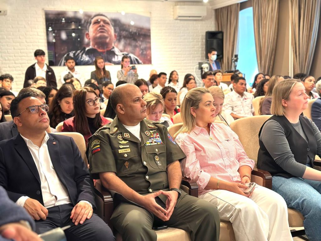 Moscú, 22 de agosto de 2025.- En un acto de firme solidaridad y denuncia, este viernes se desarrolló, en el Salón “Simón Bolívar” de la Embajada de Venezuela en Rusia, el conversatorio titulado “Amenazas y Ofensivas del Imperialismo en América Latina – Caso Venezuela. Desmontando la Infamia”.