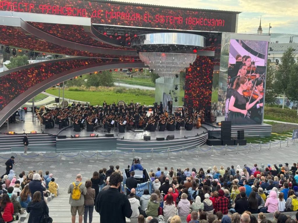 Moscú, 24 de agosto de 2025.- La Orquesta Sinfónica Juvenil “Francisco de Miranda” deslumbró al público de Moscú, en su presentación en el III Festival de Orquestas Juveniles del Mundo, celebrado en el Gran Anfiteatro del Parque Zaryade.