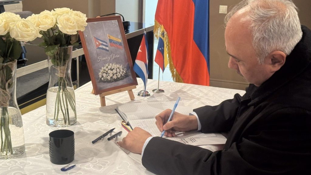 Moscú, 14 de enero de 2026.- En una jornada de profunda fraternidad y solidaridad internacional, representantes diplomáticos acreditados en la Federación de Rusia acudieron masivamente a la Embajada de Venezuela en Moscú para firmar el Libro de Condolencias abierto en homenaje a los héroes y mártires de Cuba y Venezuela, quienes ofrendaron sus vidas en defensa de la soberanía venezolana durante la ilegítima agresión del gobierno de Estados Unidos (EEUU) el pasado 3 de enero, que culminó con el secuestro ilegal del presidente Nicolás Maduro Moros y la primera dama Cilia Flores.